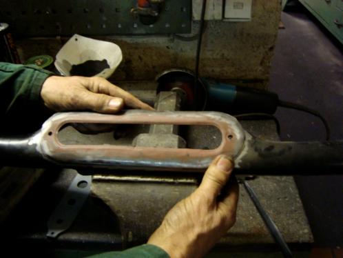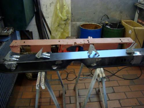 Weiter geht es mit der Quertraverse, die sehr harte Zeiten hinter sich hatte, und zudem die falschen Sitzhalter besaß.