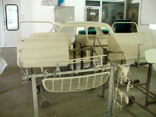 Endlich trifft die Karosserie in einem Lackierfachbetrieb ein, wo auch gleich die Vorbereitungen für eine makellose Lackierung getroffen werden.