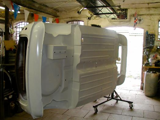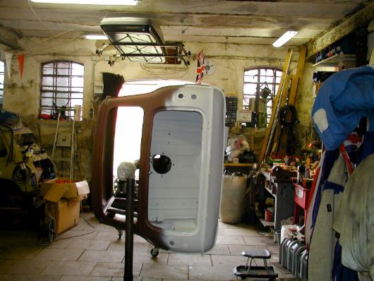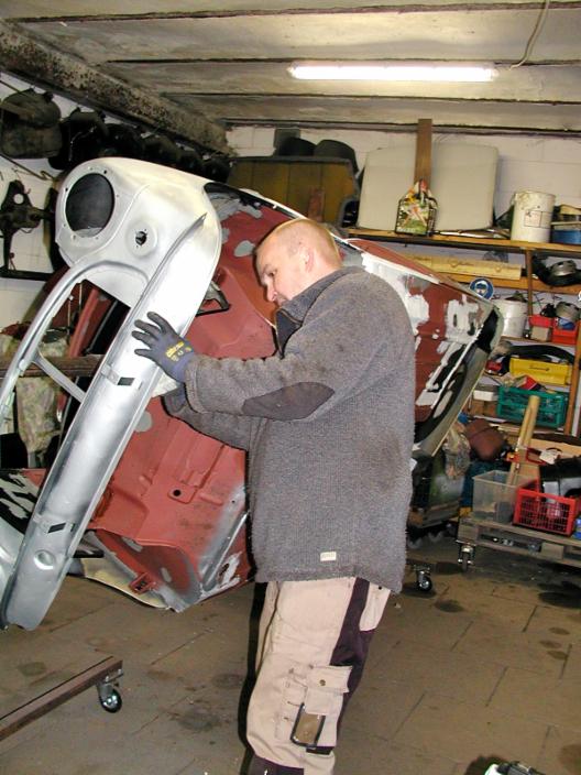 Nach genau zwei Jahren harter Arbeit in externer Werkstatt, konnte die Karosserie wieder in die heimische Garage geholt werden.